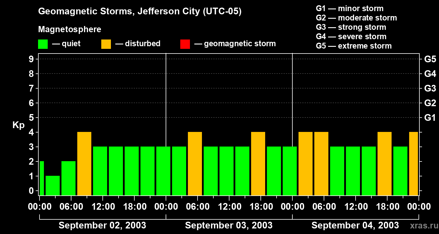 Geomagnetic storms in Jefferson City — Sep 04, 2003