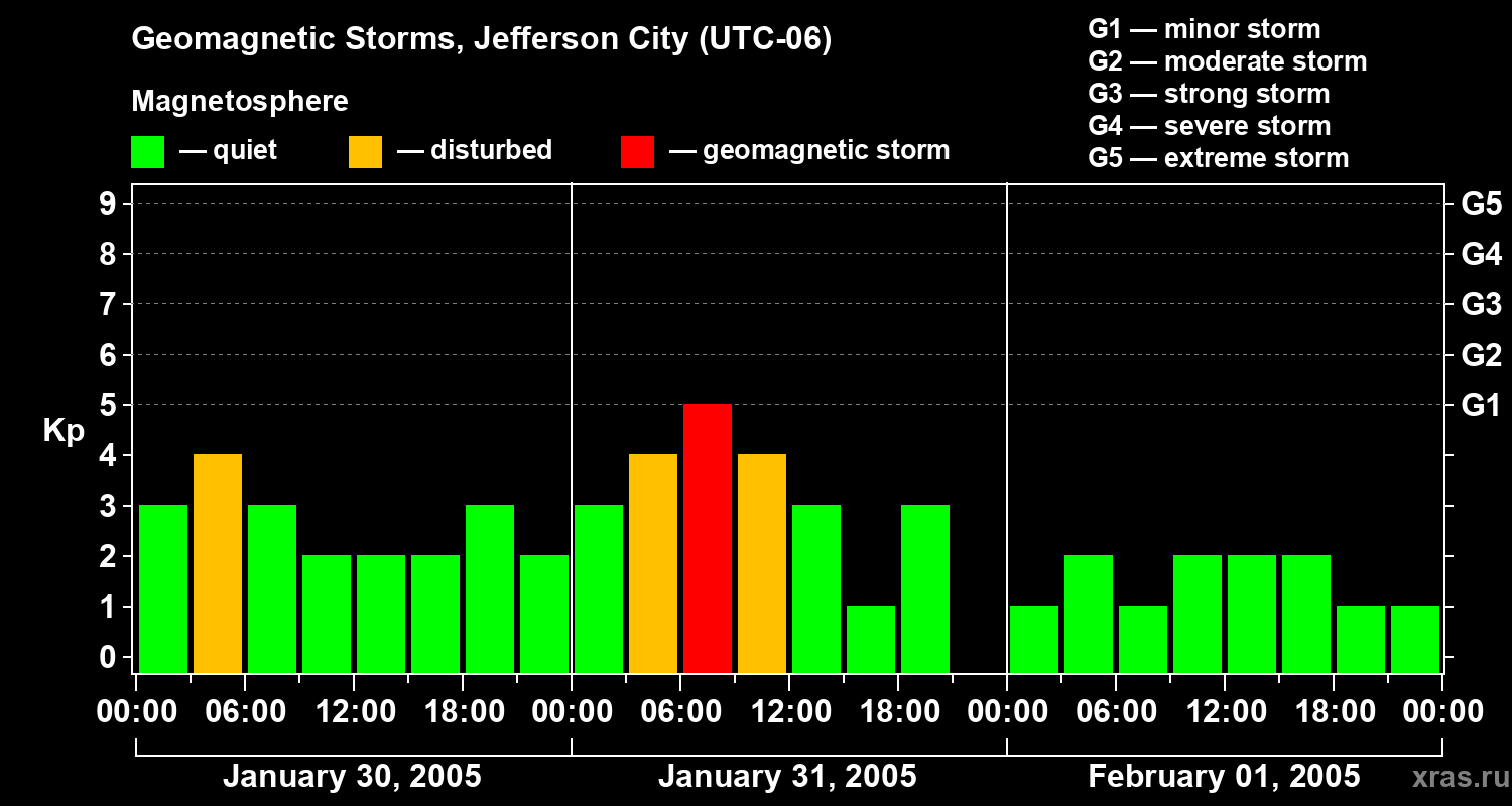 Geomagnetic storms in Jefferson City — Feb 01, 2005