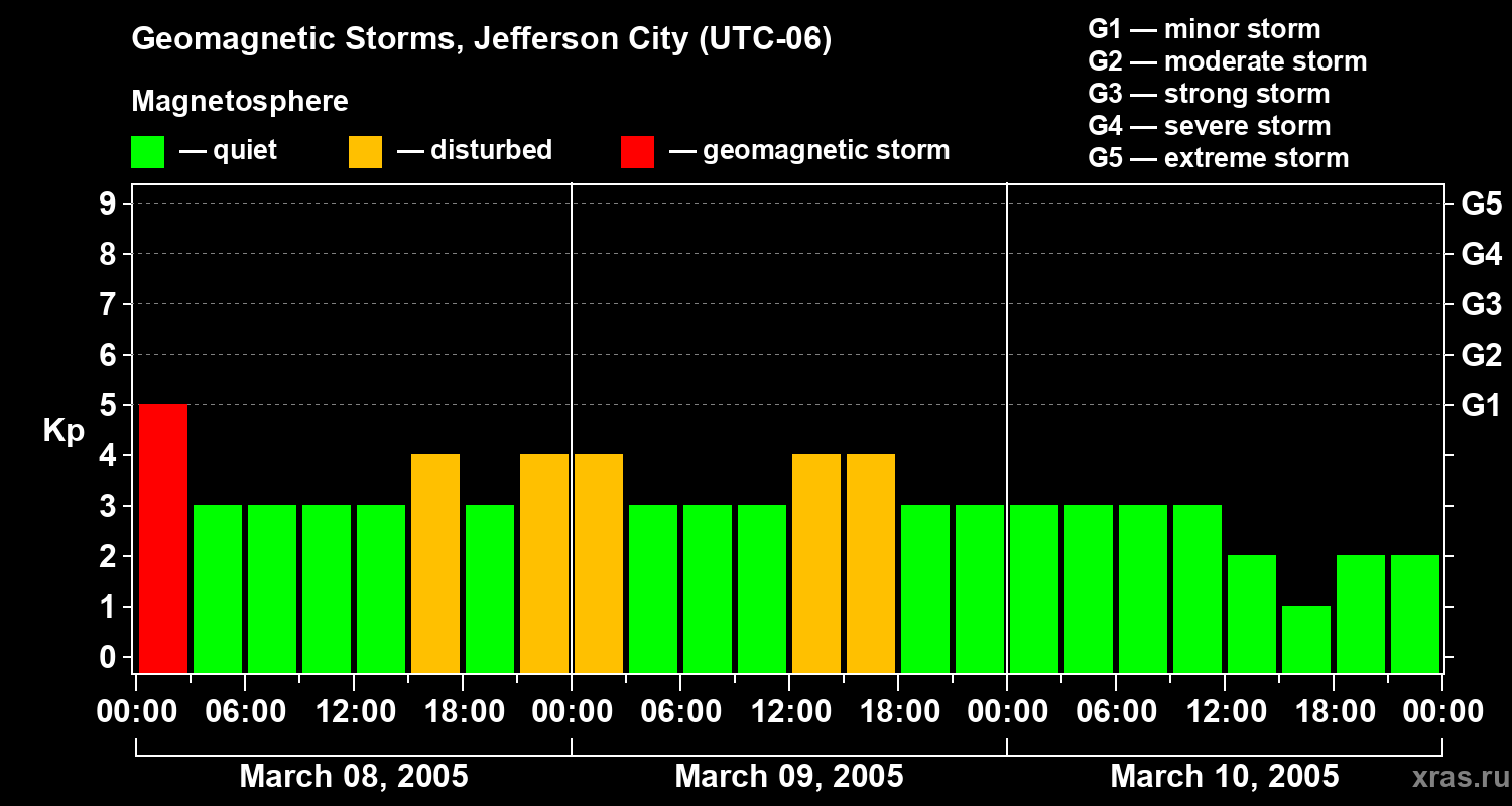 Geomagnetic storms in Jefferson City — Mar 10, 2005