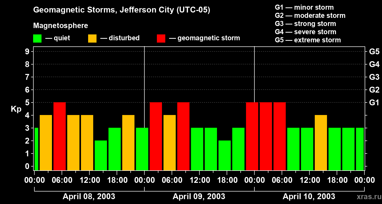 Geomagnetic storms in Jefferson City — Apr 10, 2003