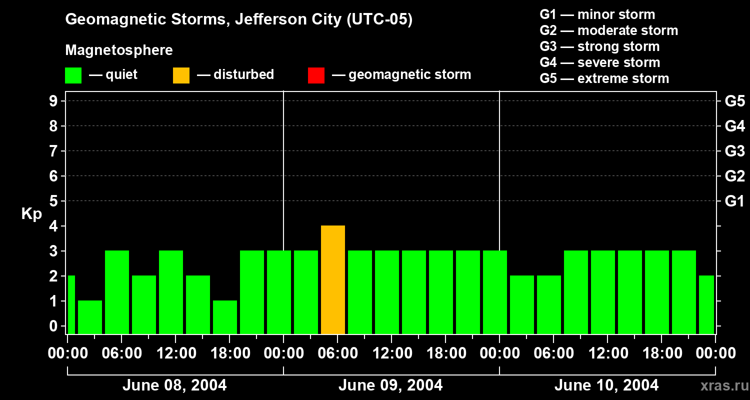 Geomagnetic storms in Jefferson City — Jun 10, 2004