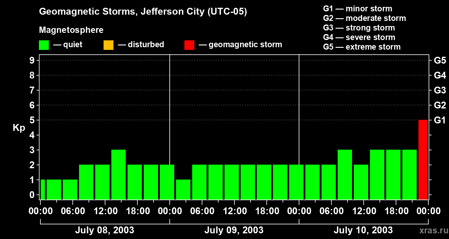Geomagnetic storms in Jefferson City — Jul 10, 2003
