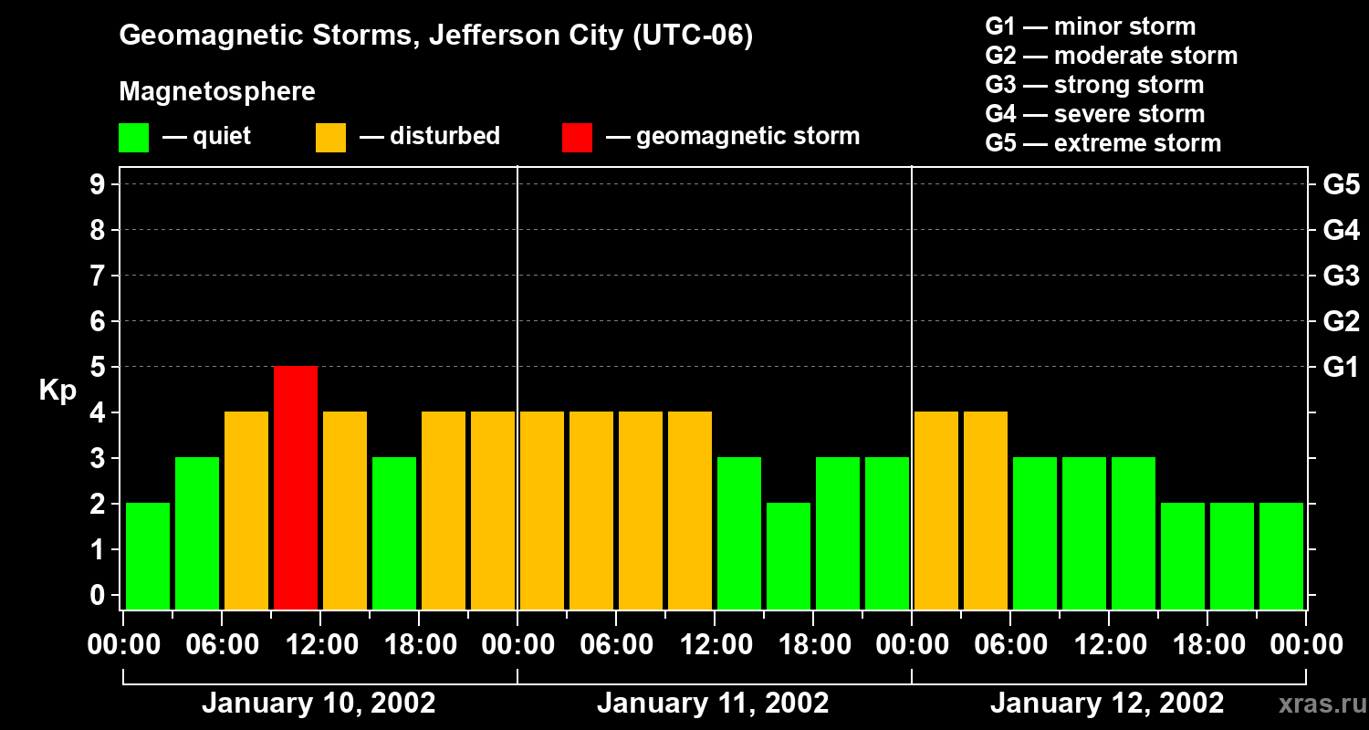 Geomagnetic storms in Jefferson City on Jan 12, 2002