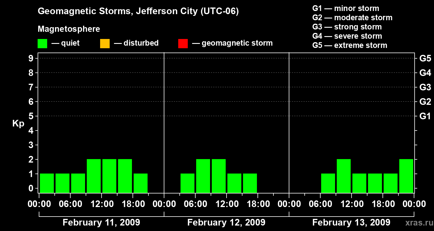 Geomagnetic storms in Jefferson City — Feb 13, 2009