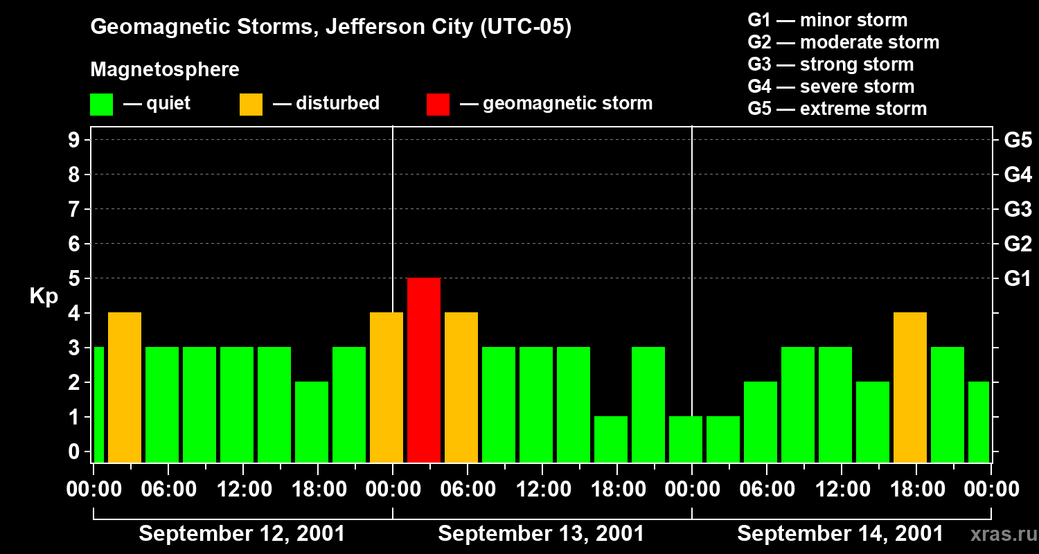 Geomagnetic storms in Jefferson City — Sep 14, 2001