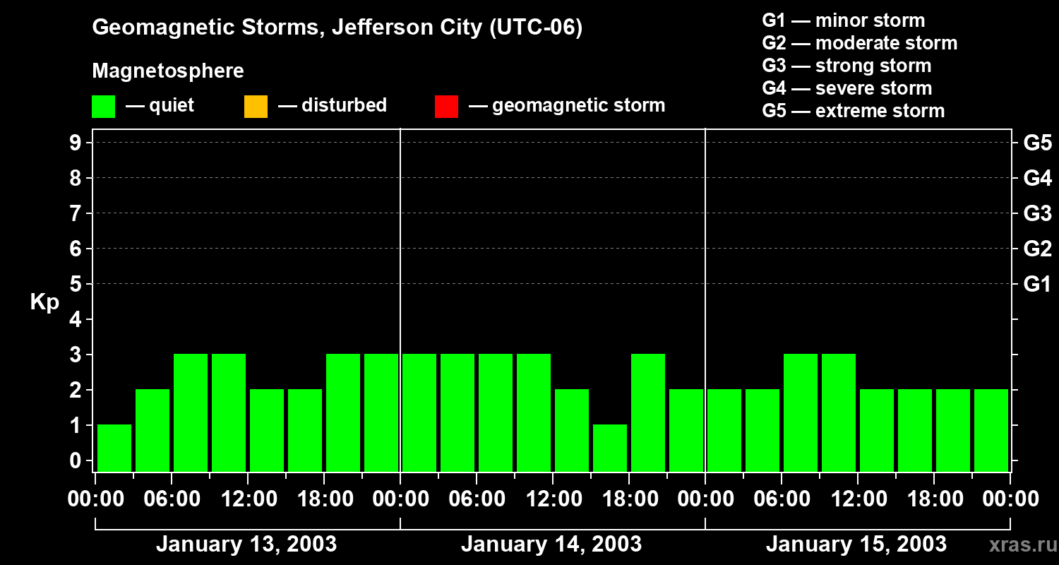 Geomagnetic storms in Jefferson City on Jan 15, 2003