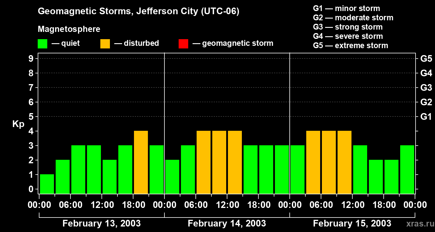 Geomagnetic storms in Jefferson City on Feb 15, 2003
