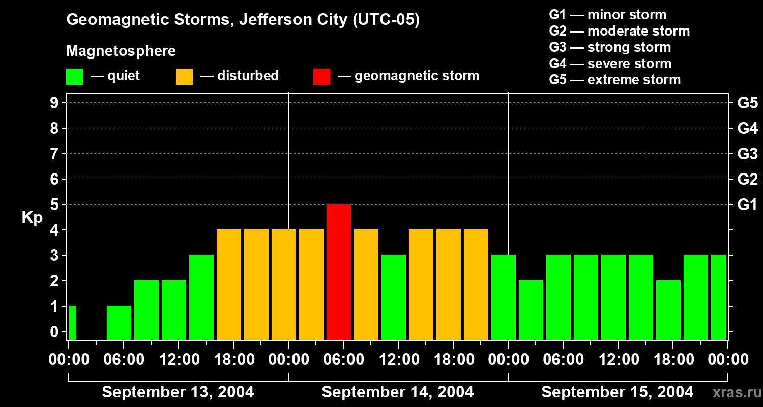 Geomagnetic storms in Jefferson City — Sep 15, 2004