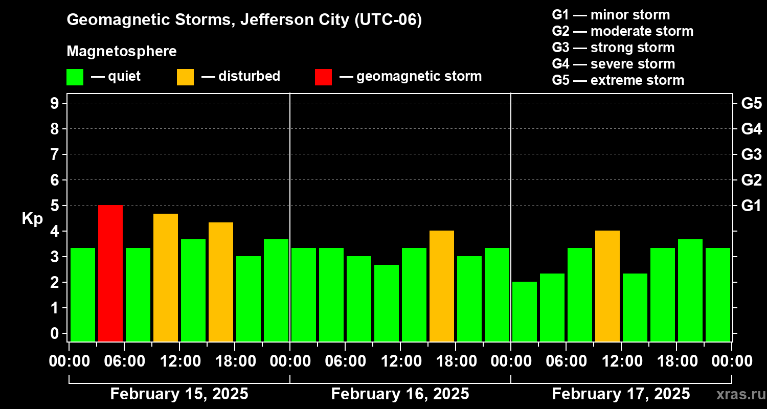 Geomagnetic storms in Jefferson City — Feb 17, 2025