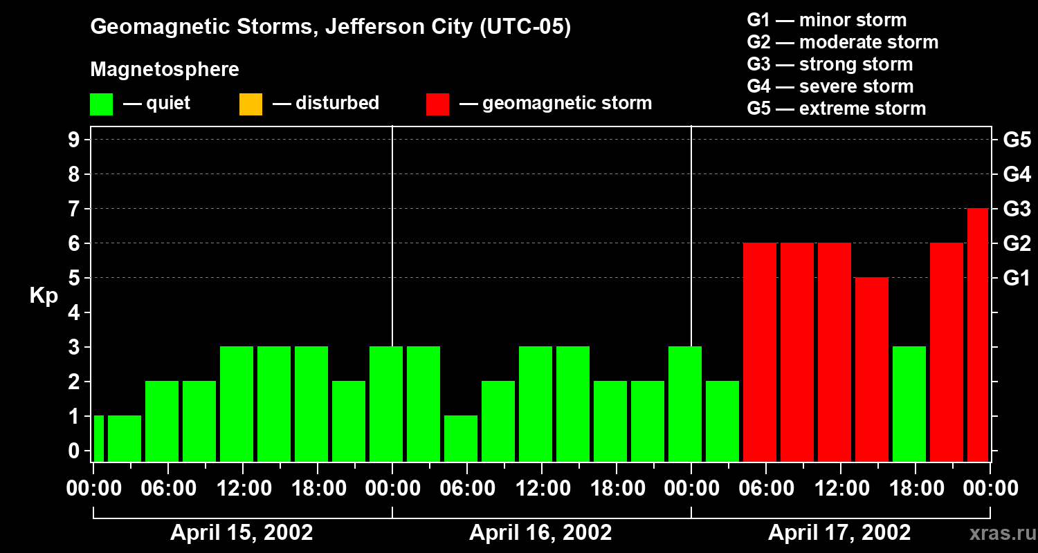 Geomagnetic storms in Jefferson City — Apr 17, 2002