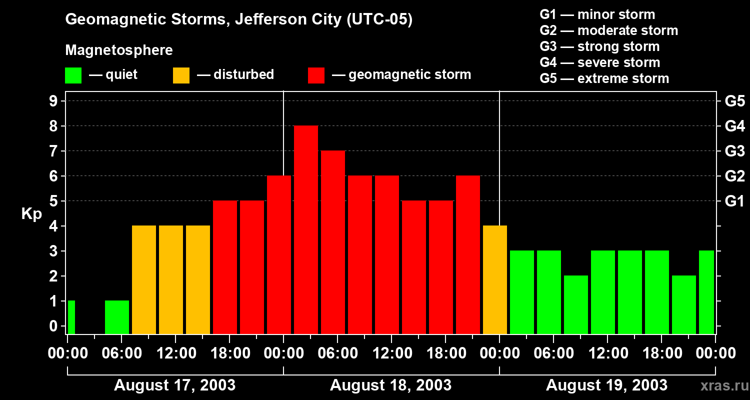 Geomagnetic storms in Jefferson City — Aug 19, 2003