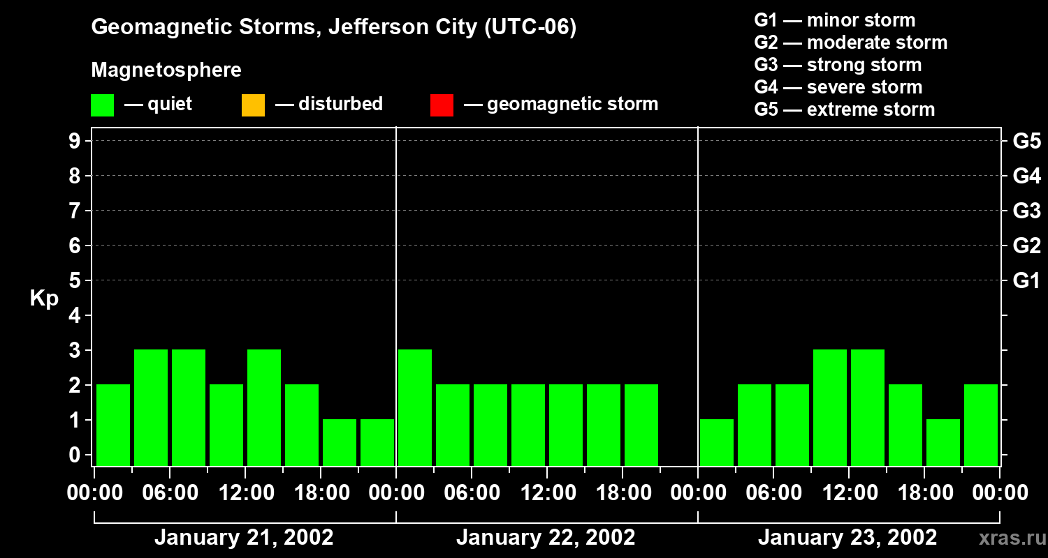 Geomagnetic storms in Jefferson City on Jan 23, 2002