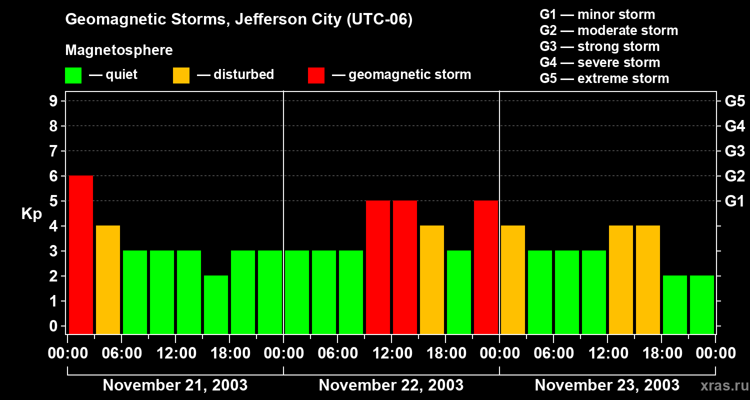 Geomagnetic storms in Jefferson City — Nov 23, 2003