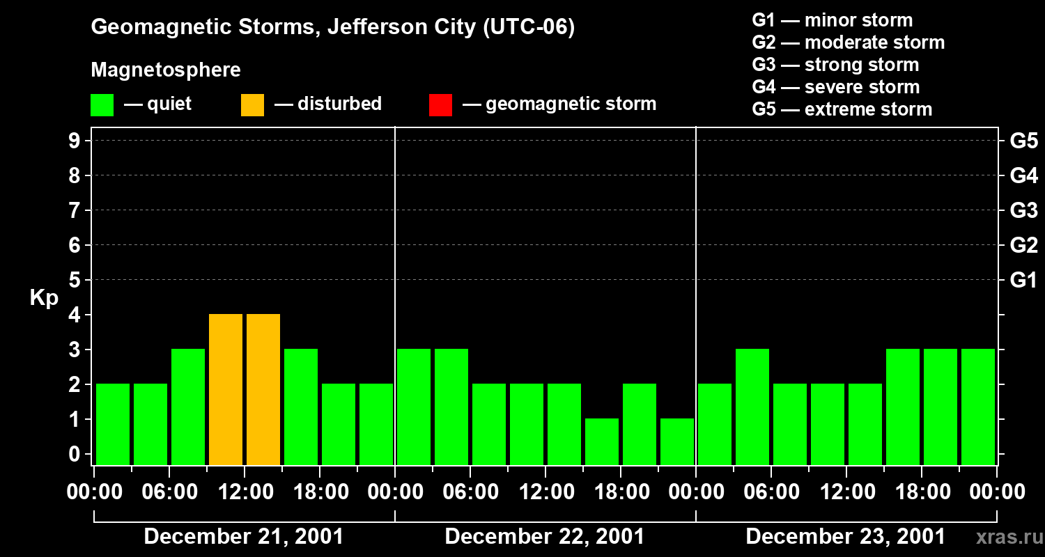Geomagnetic storms in Jefferson City on Dec 23, 2001