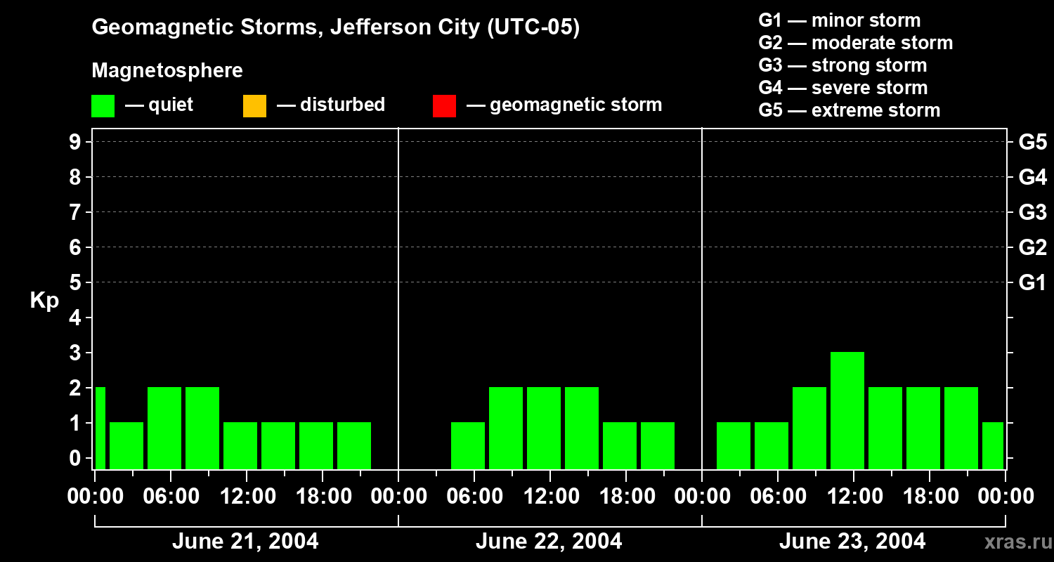 Geomagnetic storms in Jefferson City on Jun 23, 2004