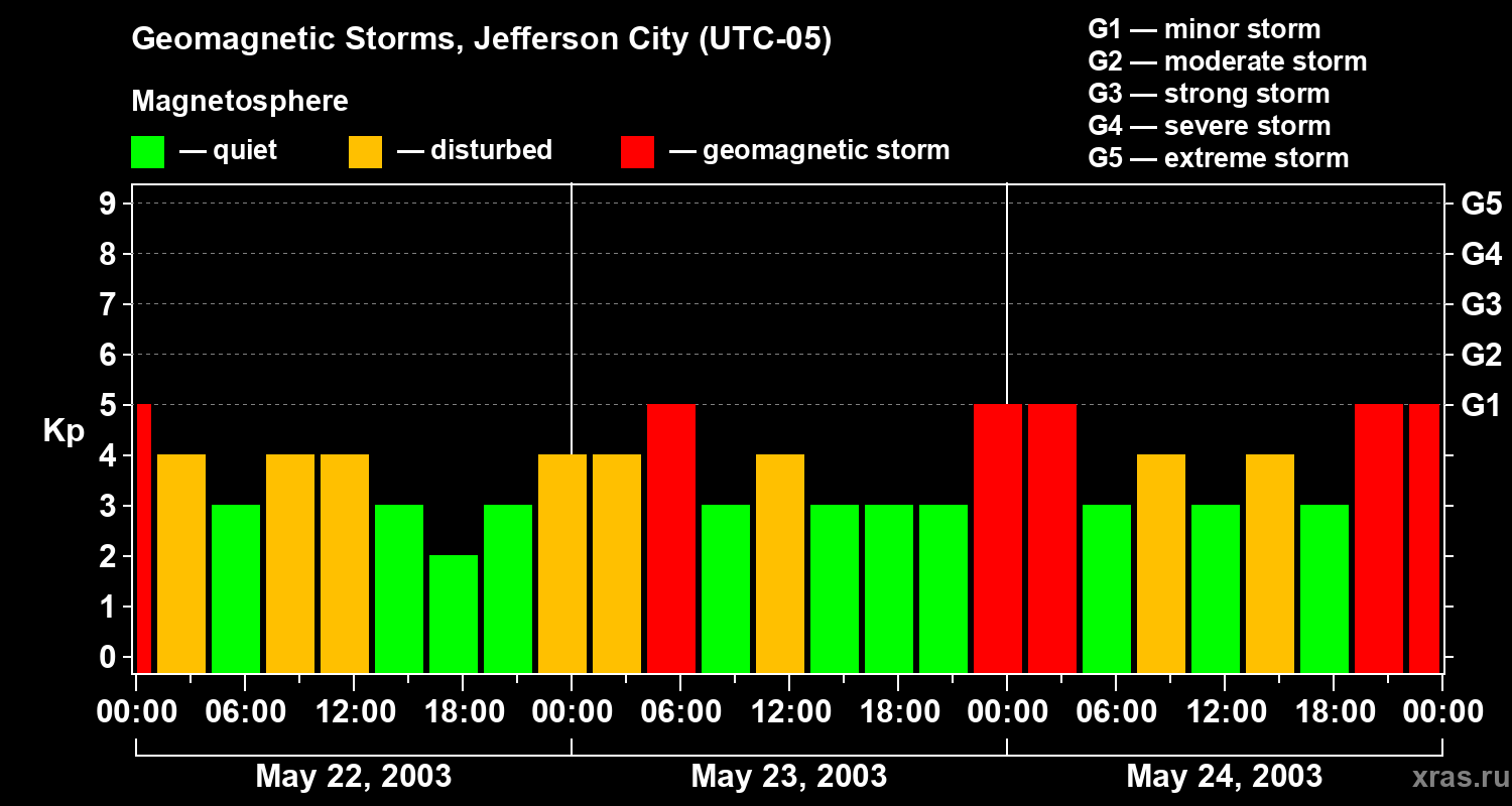 Geomagnetic storms in Jefferson City on May 24, 2003