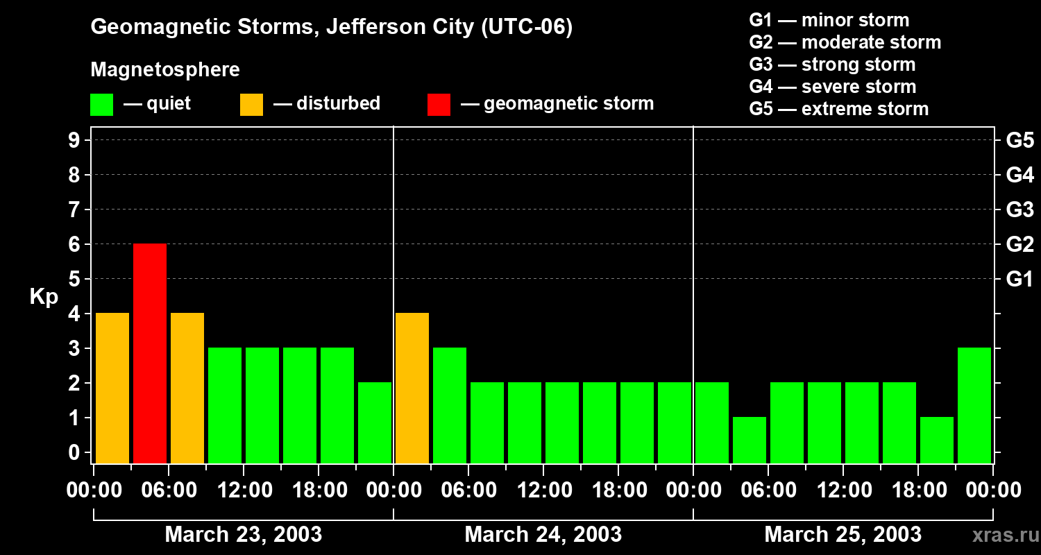 Geomagnetic storms in Jefferson City — Mar 25, 2003
