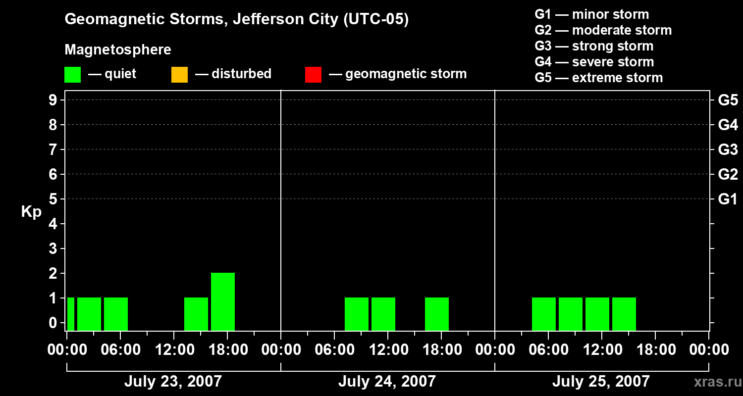 Geomagnetic storms in Jefferson City — Jul 25, 2007