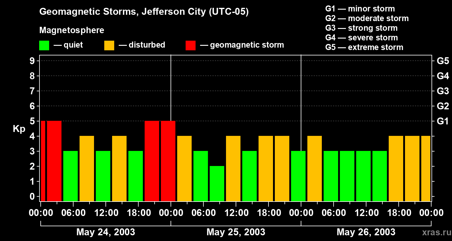 Geomagnetic storms in Jefferson City on May 26, 2003
