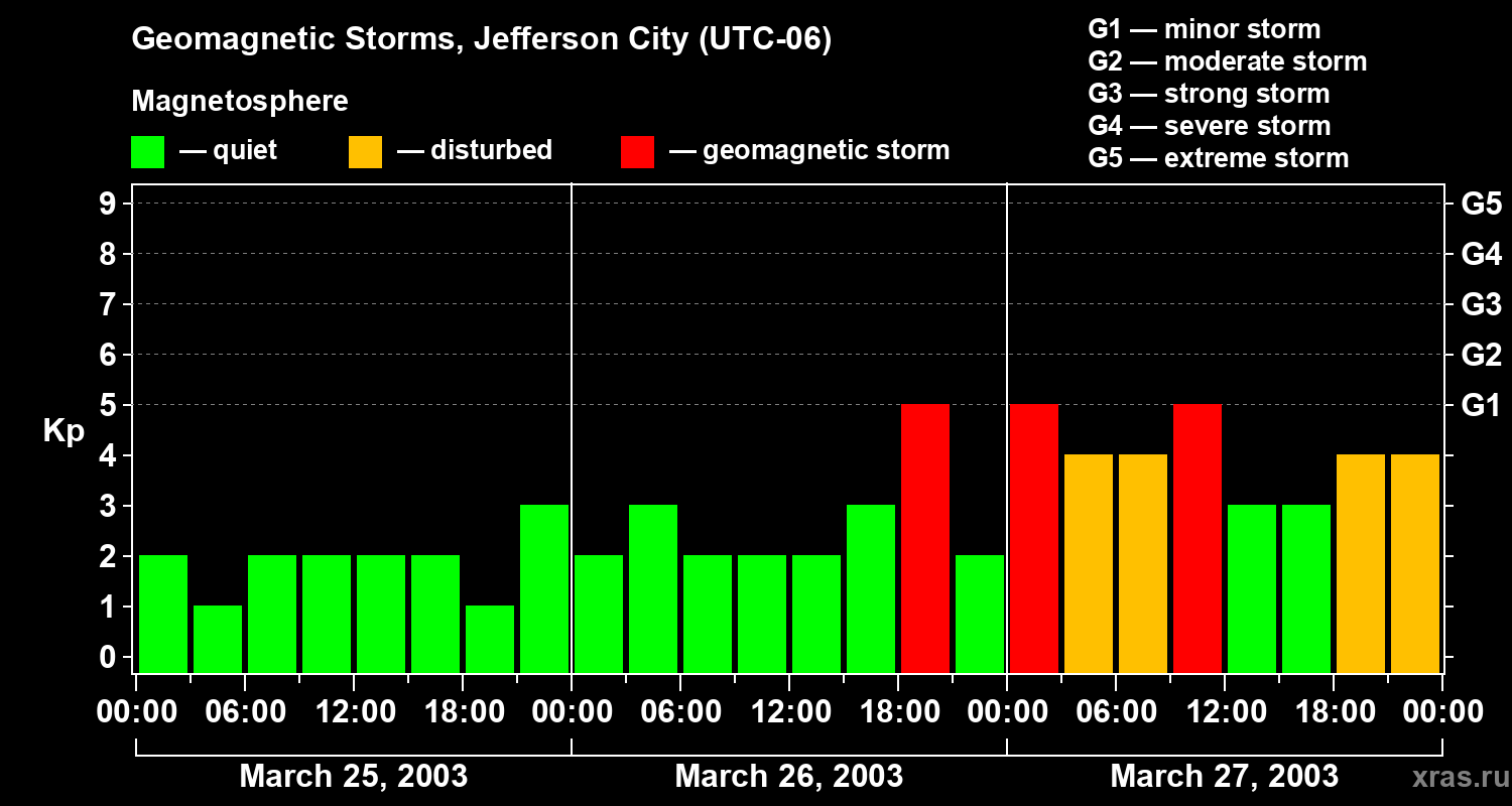 Geomagnetic storms in Jefferson City — Mar 27, 2003