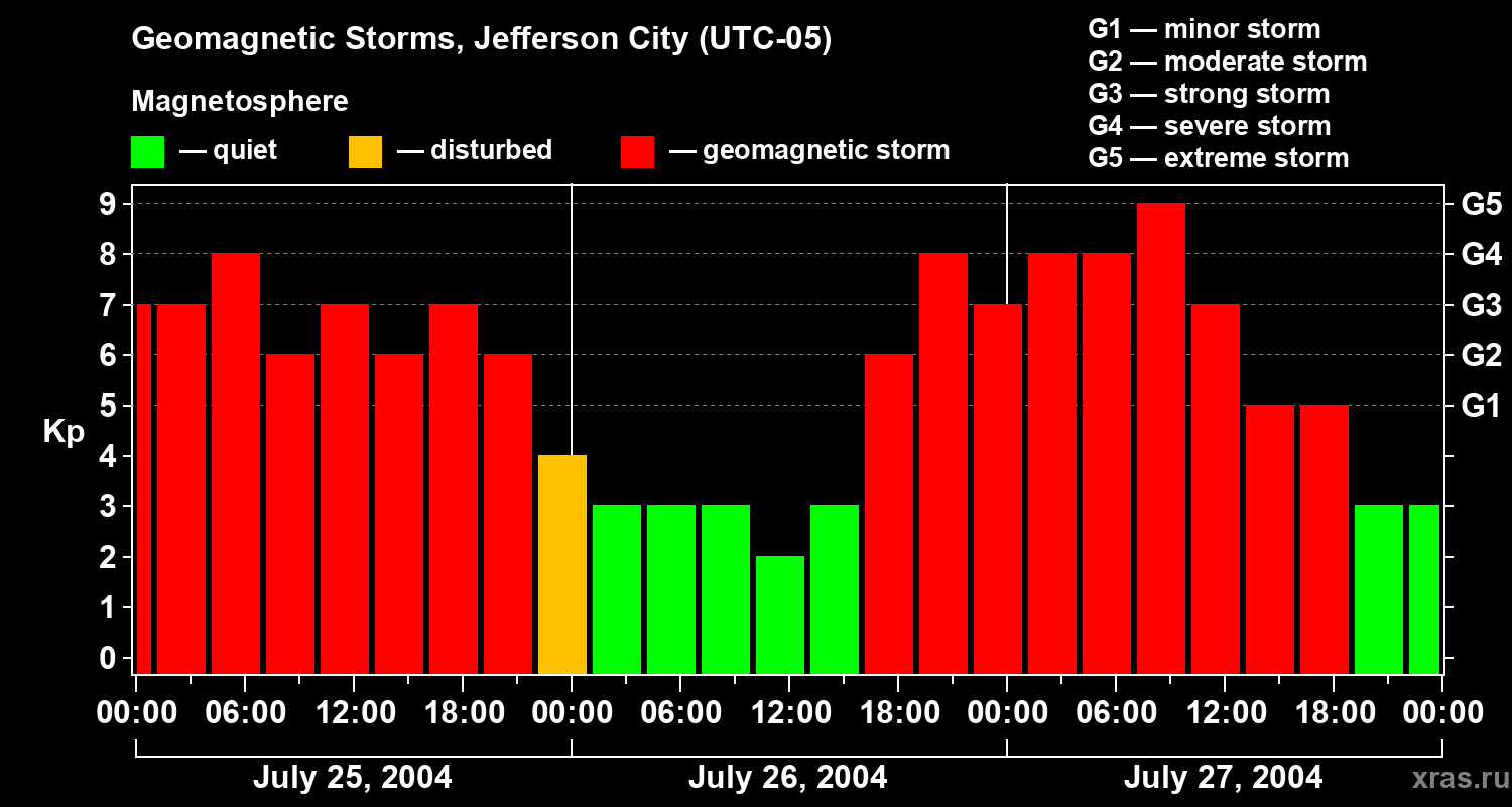 Geomagnetic storms in Jefferson City — Jul 27, 2004