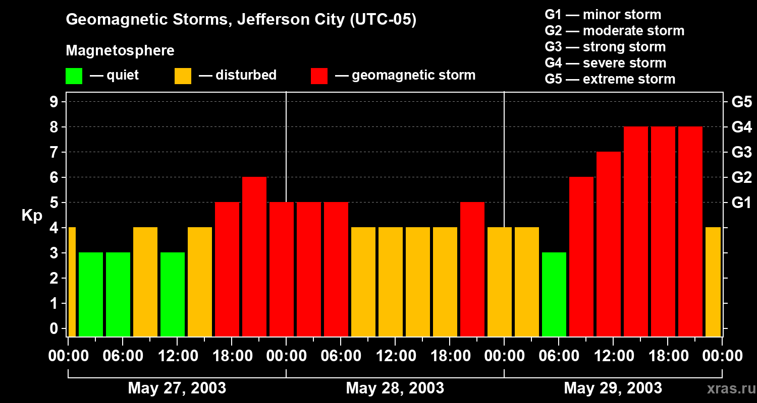 Geomagnetic storms in Jefferson City — May 29, 2003