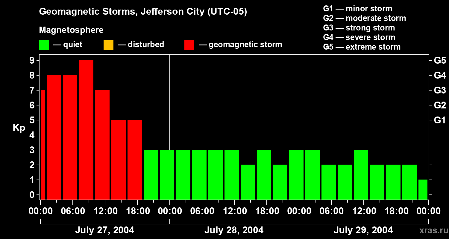 Geomagnetic storms in Jefferson City — Jul 29, 2004