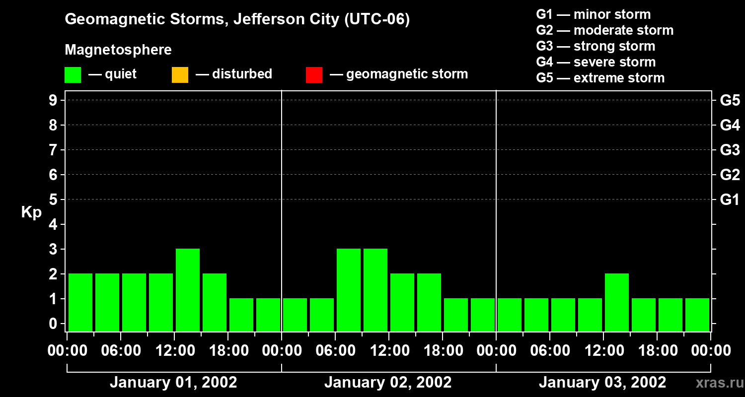 Geomagnetic storms in Jefferson City on Jan 03, 2002