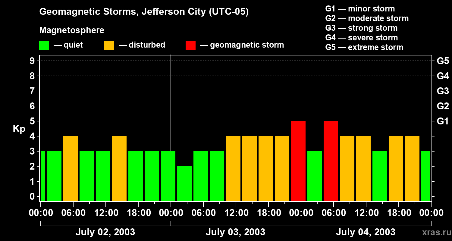 Geomagnetic storms in Jefferson City — Jul 04, 2003