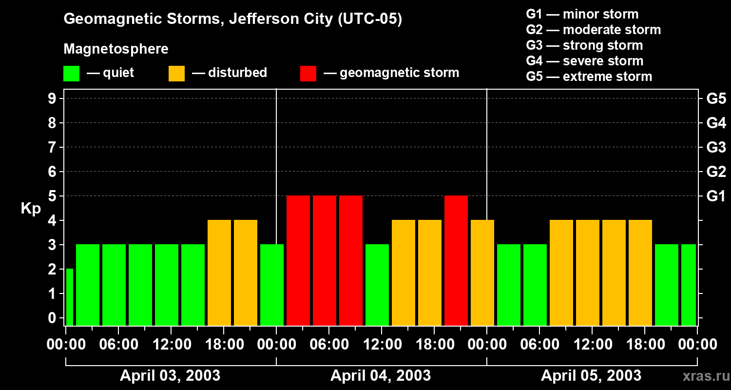 Geomagnetic storms in Jefferson City — Apr 05, 2003