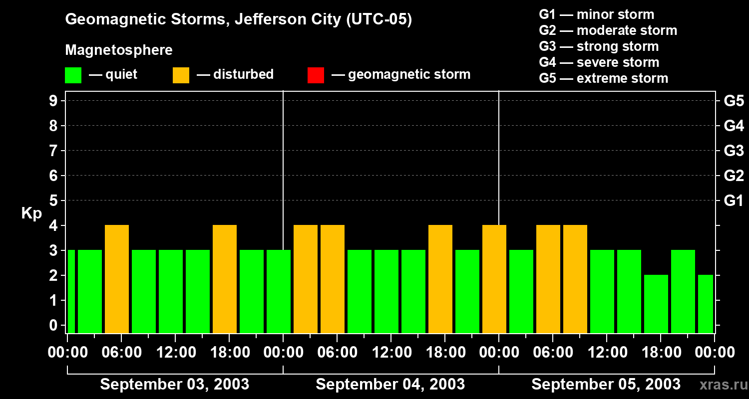 Geomagnetic storms in Jefferson City — Sep 05, 2003