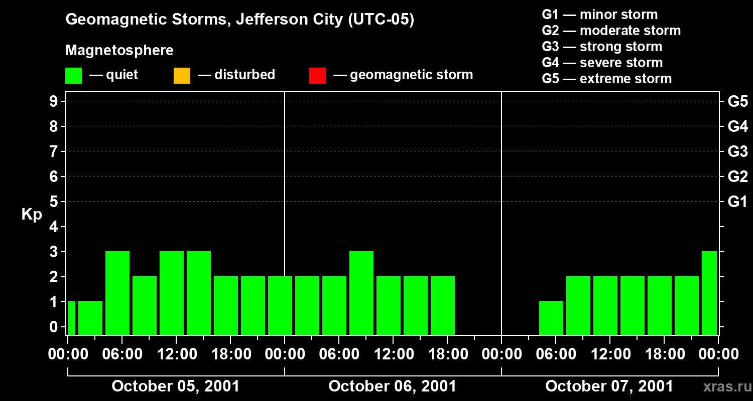 Geomagnetic storms in Jefferson City — Oct 07, 2001
