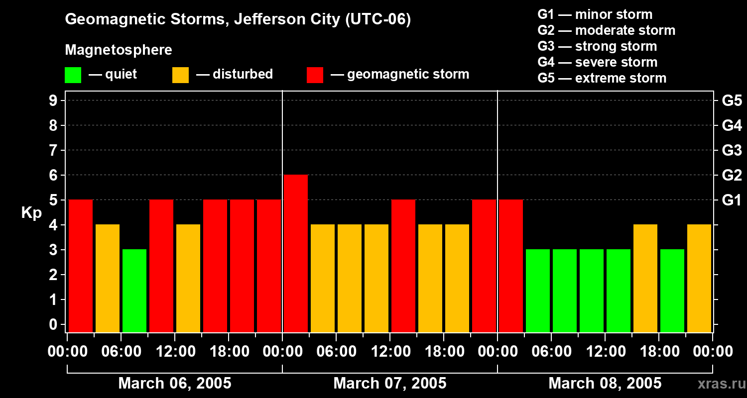 Geomagnetic storms in Jefferson City — Mar 08, 2005