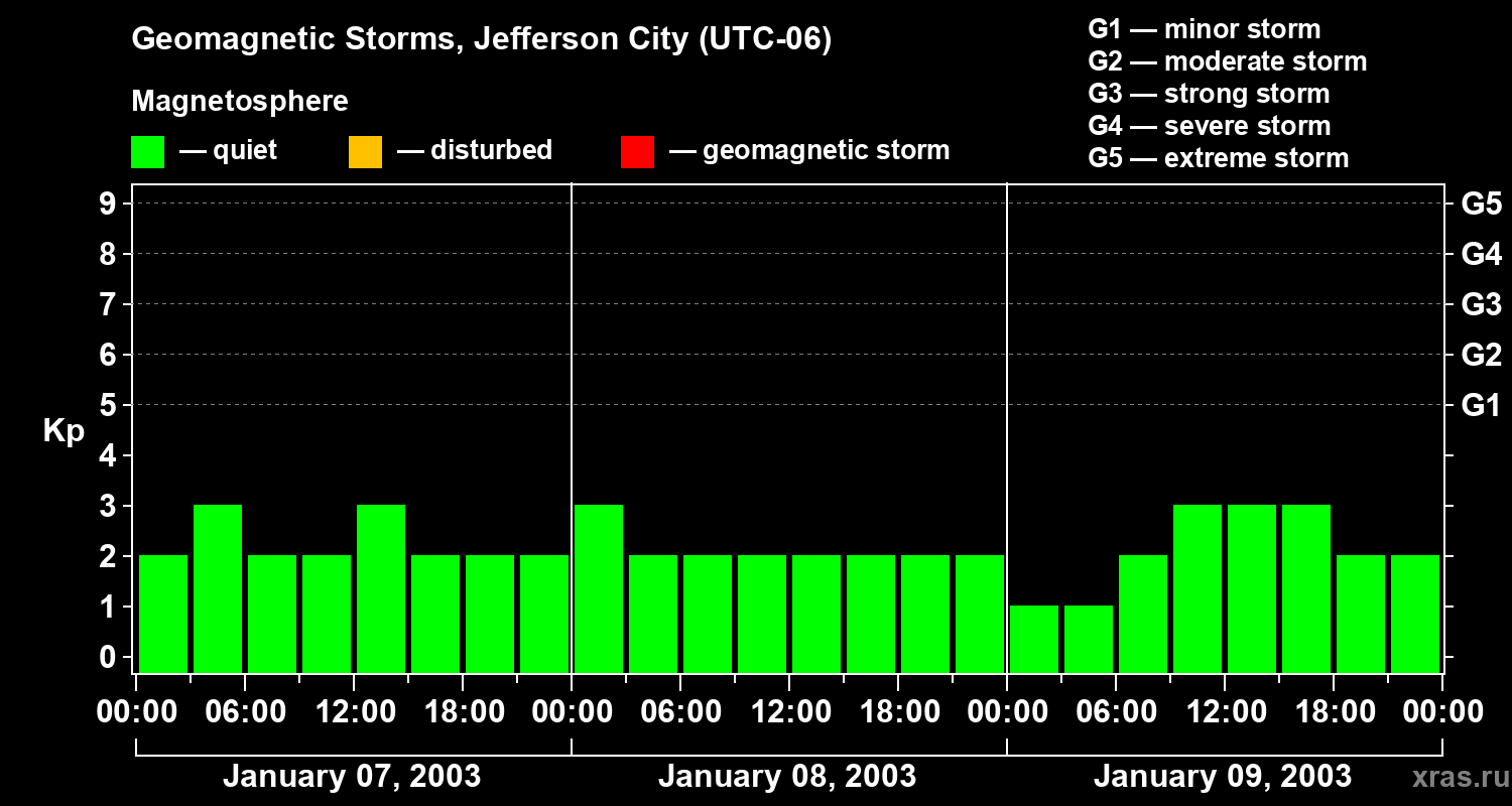 Geomagnetic storms in Jefferson City — Jan 09, 2003