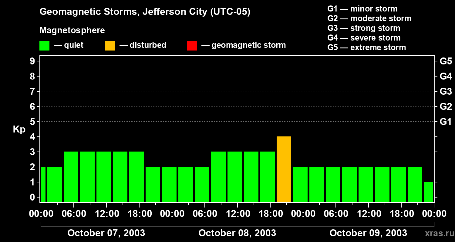 Geomagnetic storms in Jefferson City — Oct 09, 2003