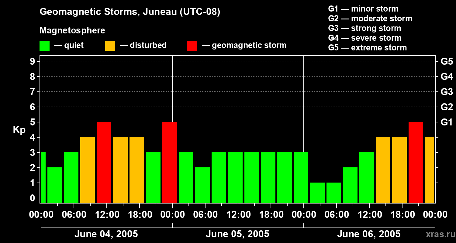 Geomagnetic storms in Juneau — Jun 06, 2005