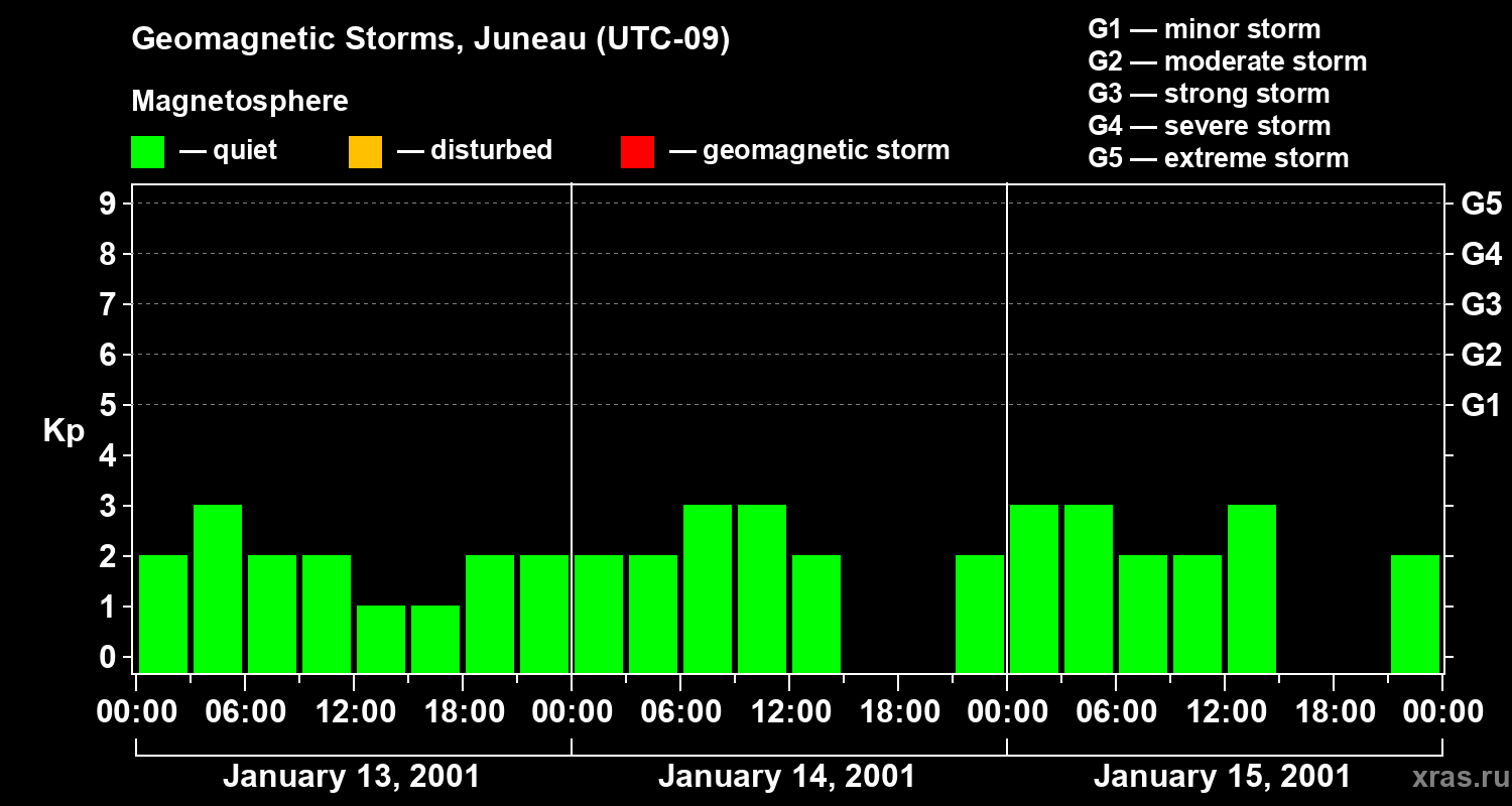 Geomagnetic storms in Juneau — Jan 15, 2001