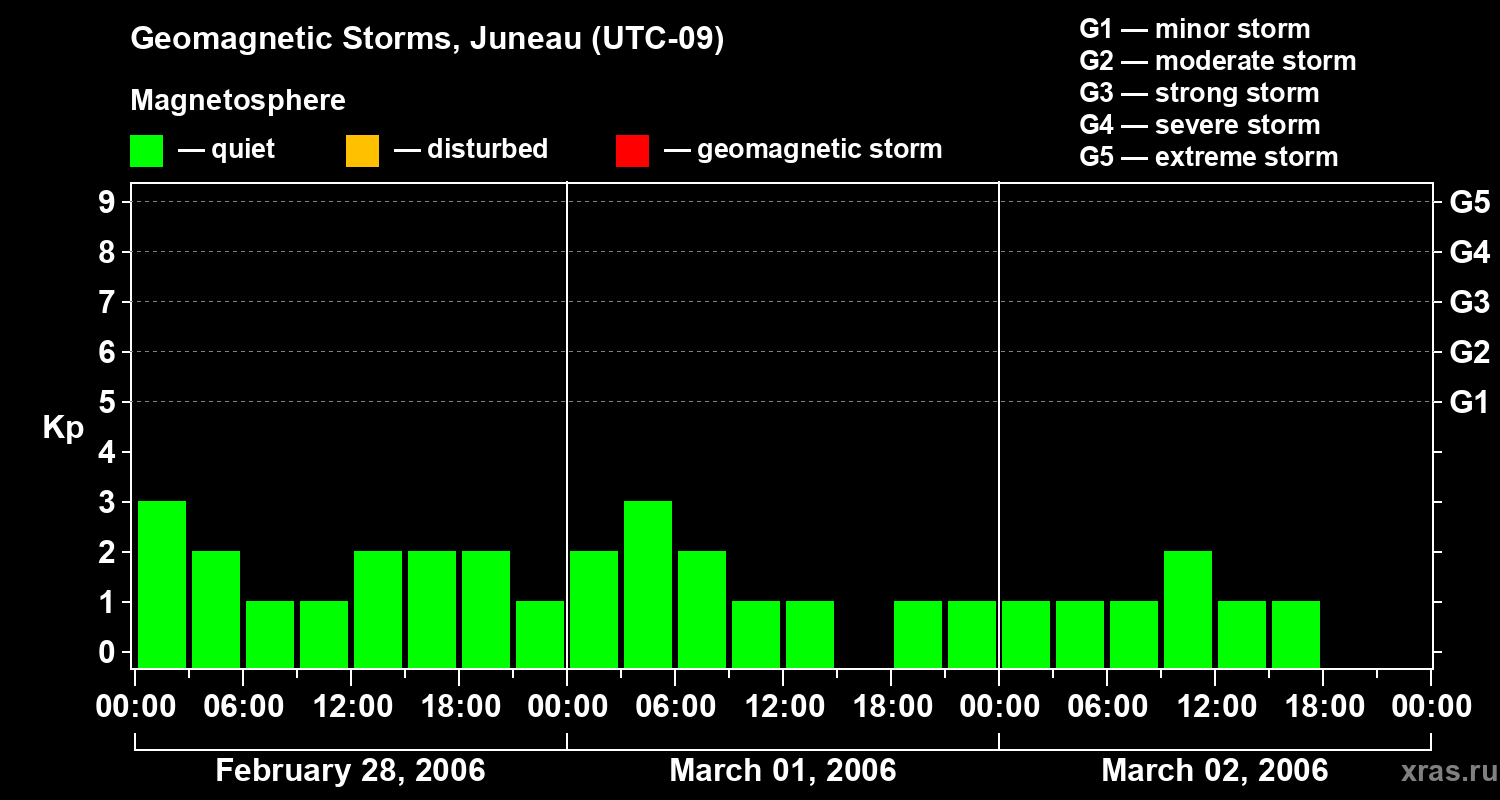 Geomagnetic storms in Juneau on Mar 02, 2006