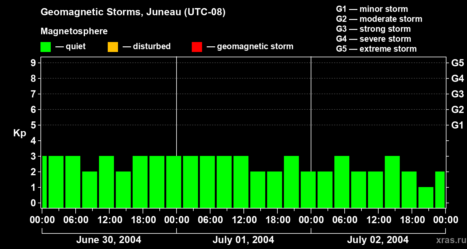 Geomagnetic storms in Juneau — Jul 02, 2004
