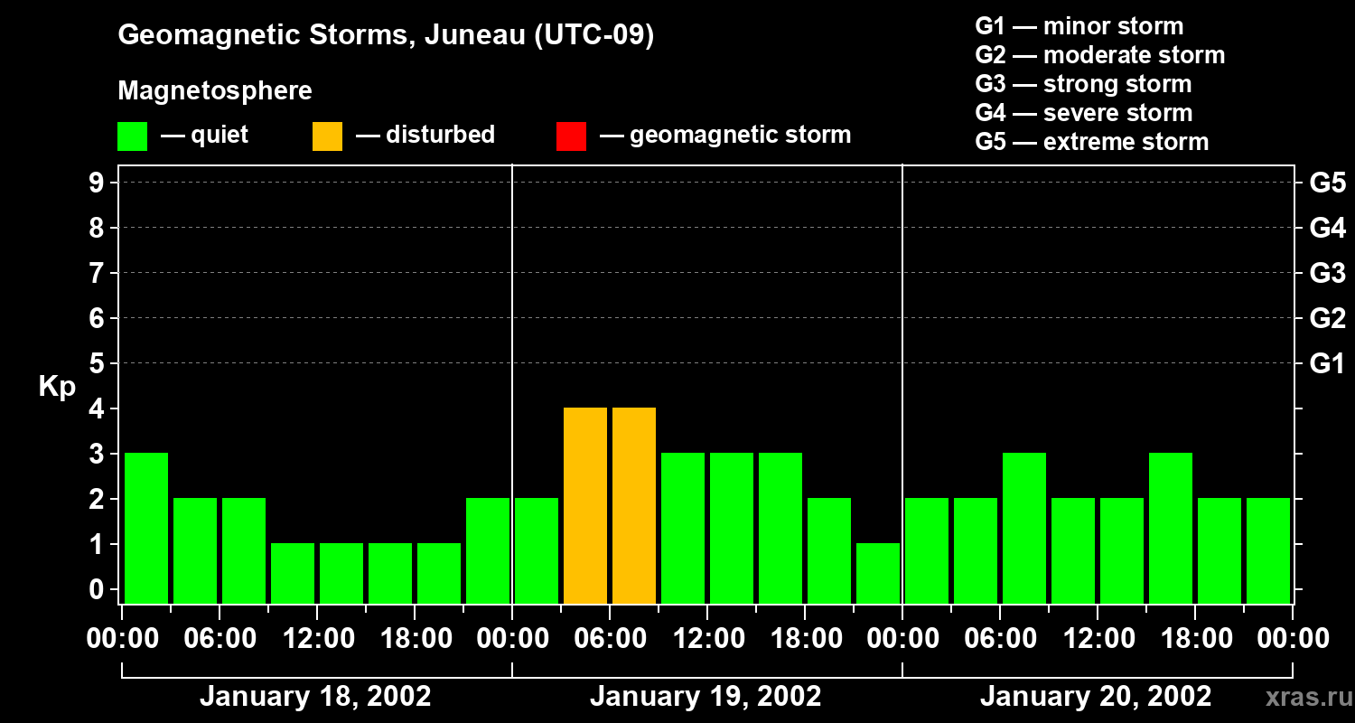 Geomagnetic storms in Juneau on Jan 20, 2002