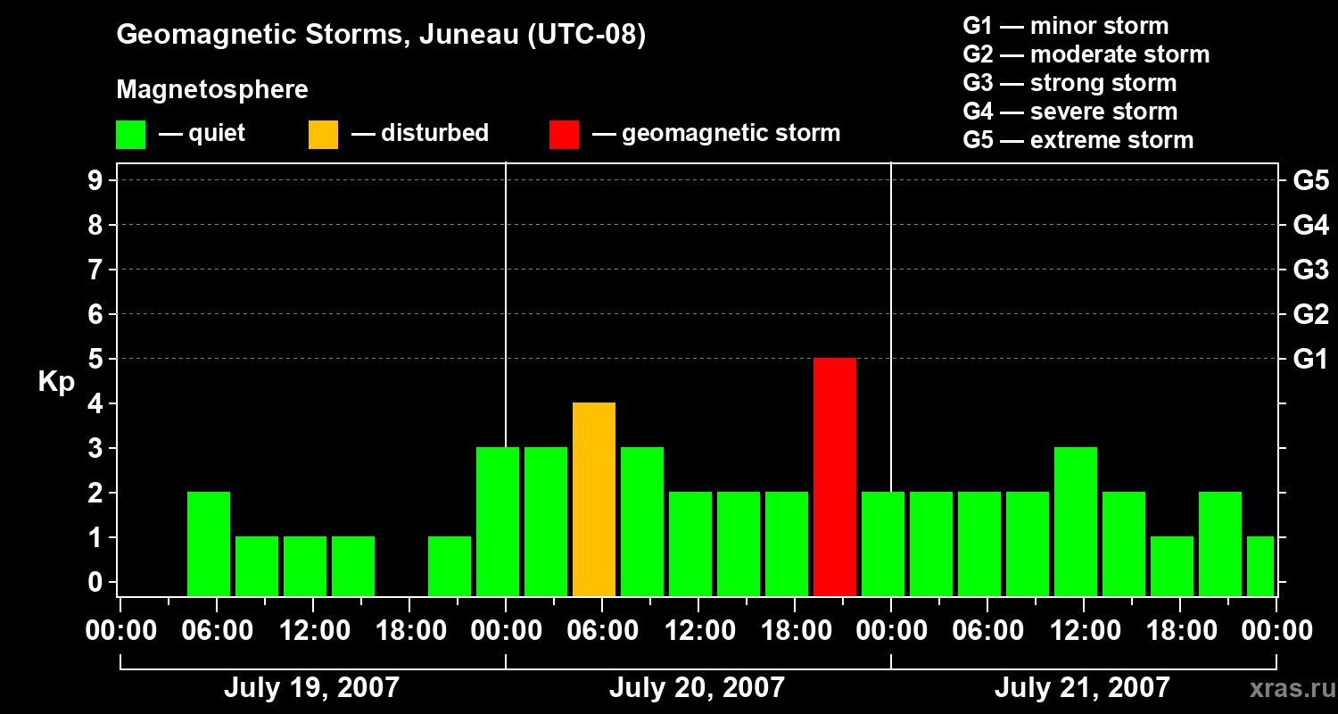 Geomagnetic storms in Juneau — Jul 21, 2007