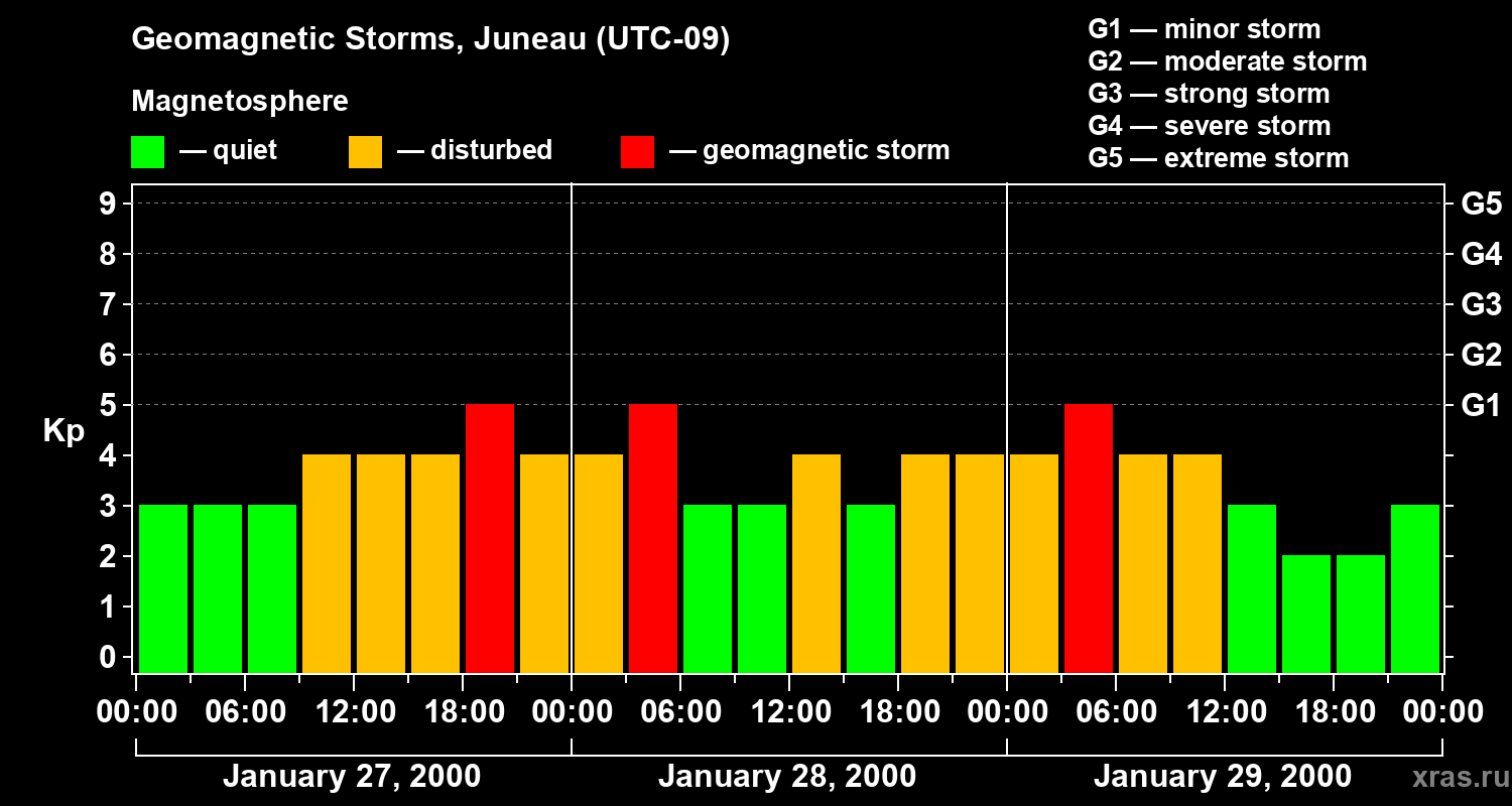 Geomagnetic storms in Juneau on Jan 29, 2000