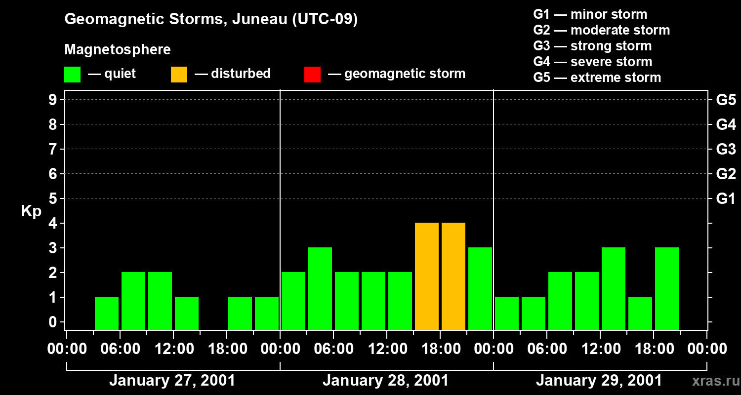 Geomagnetic storms in Juneau on Jan 29, 2001