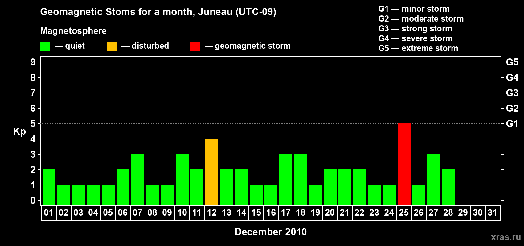 Geomagnetic storms in Juneau in December 2010