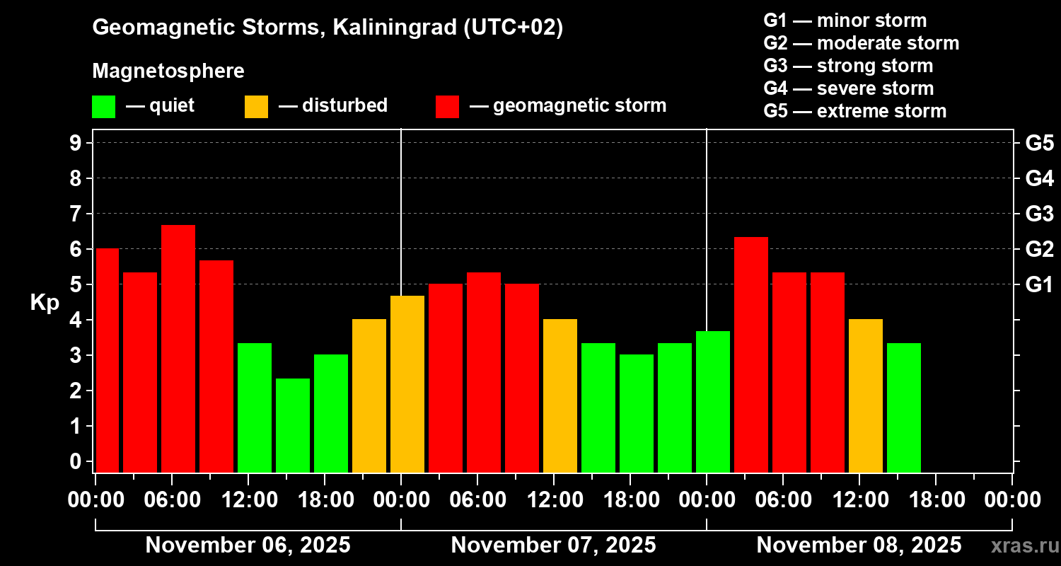 Geomagnetic storms in Kaliningrad on Nov 08, 2025