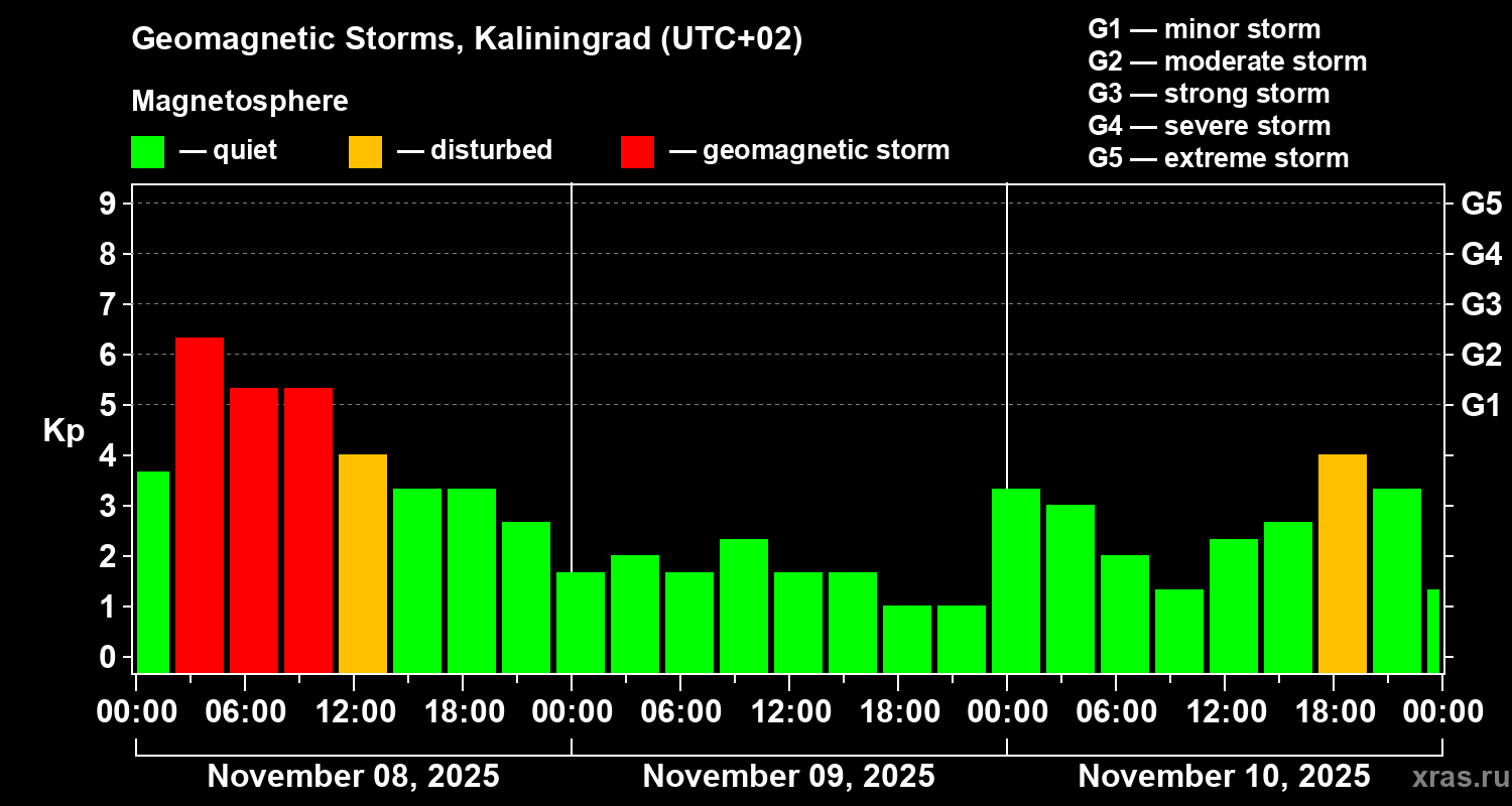 Geomagnetic storms in Kaliningrad on Nov 10, 2025