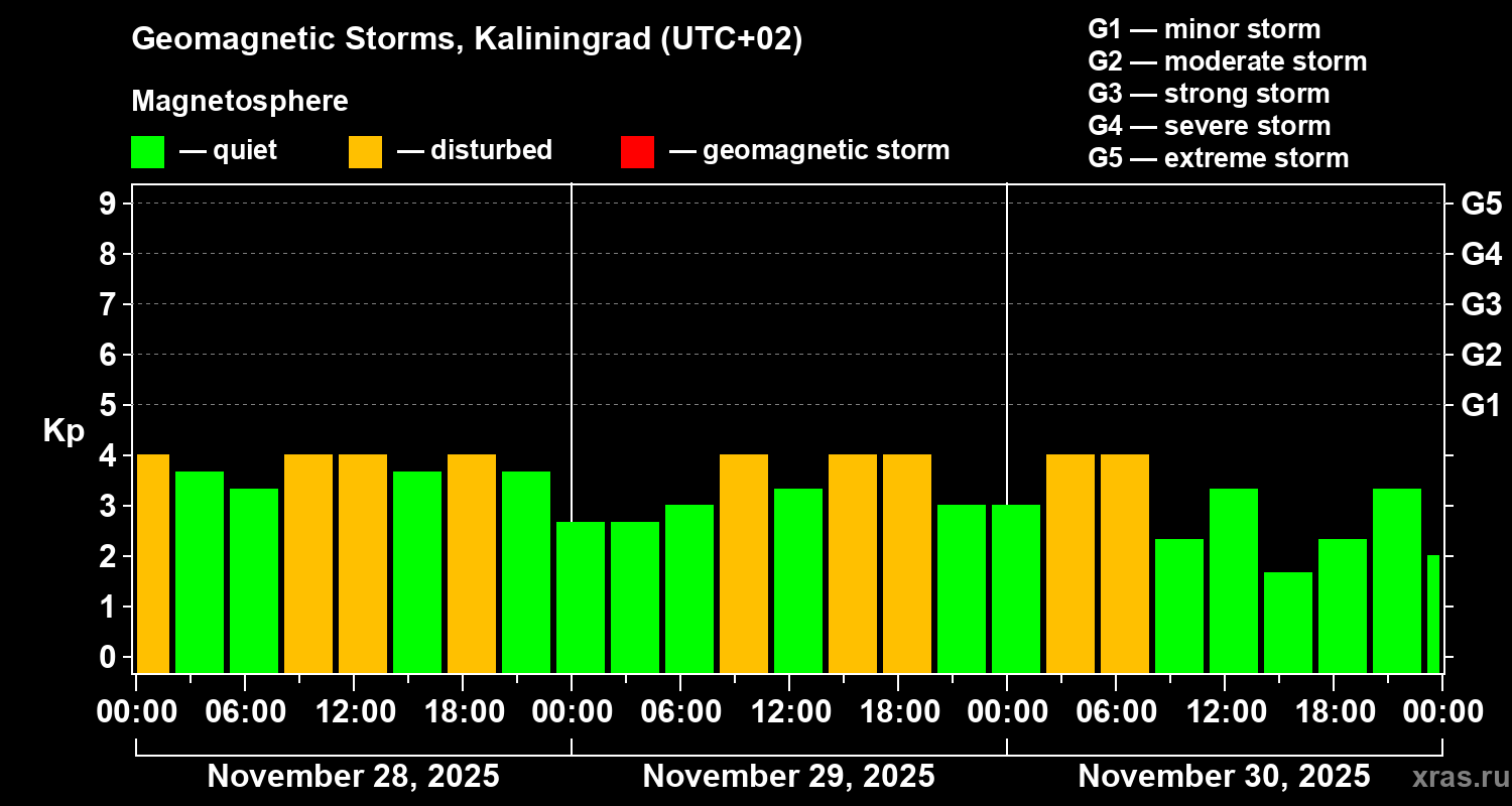 Geomagnetic storms in Kaliningrad on Nov 30, 2025