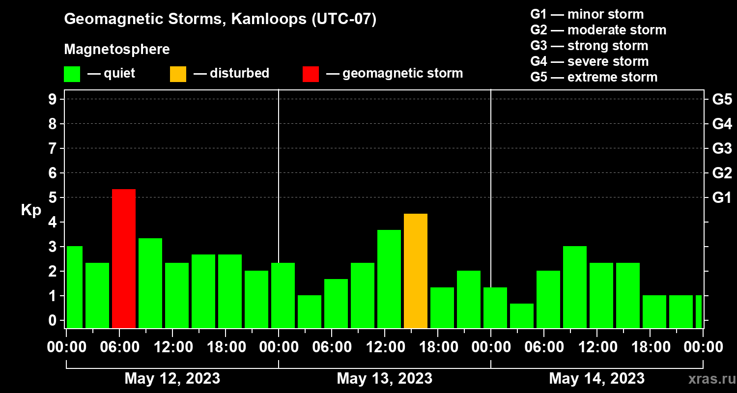 Geomagnetic storms in Kamloops on May 14, 2023
