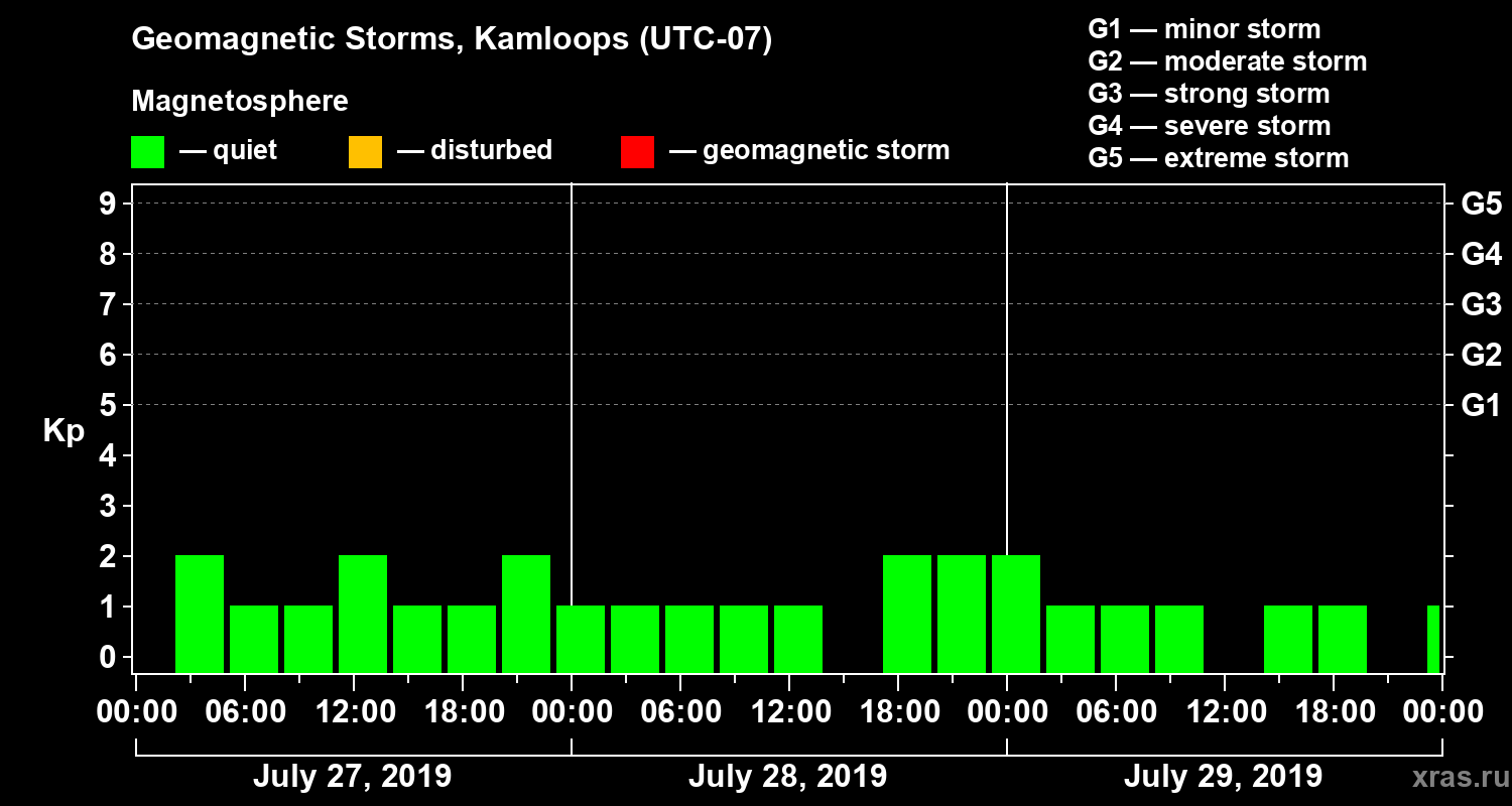 Geomagnetic storms in Kamloops on Jul 29, 2019
