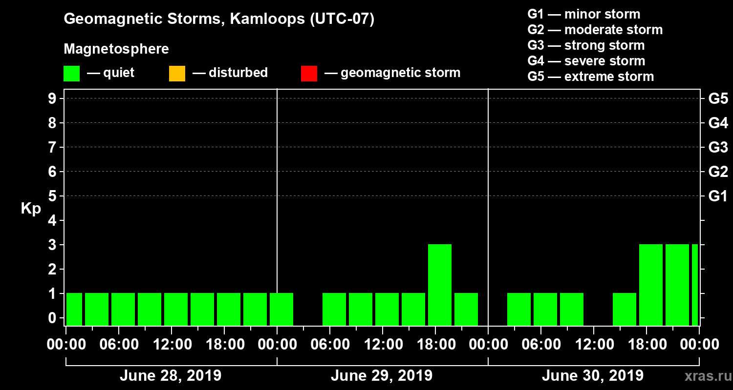 Geomagnetic storms in Kamloops on Jun 30, 2019